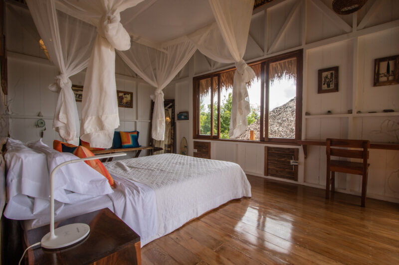The property is located between the pristine shores of Playa Marsella (15-minute walk, 5-minute drive) and the world-renowned surfing hotspot of Playa Maderas (15-minute walk, 5-minute drive). It is split between four structures. Three of them are casitas, and the other is a common space. Each has been thoughtfully designed with the same look and feel, so its cohesiveness carries throughout the property.