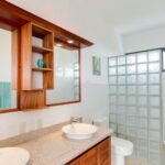 Casa Dos Vistas features a refreshing lap pool that is ideal for morning swims and sunset libations. Ample space is dedicated to sunbathing on loungers, complemented by a charming rancho for those seeking shade. The master suite on the second floor offers an even more awe-inspiring panorama, accompanied by a delightful ensuite bath adorned with high-end finishes. The wrap-around walkout deck is a visual spectacle that ensures a perpetual feast for the eyes.