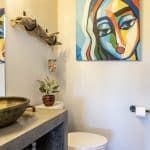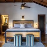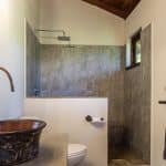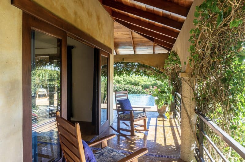 All three bedrooms have separate entrances to the main living area, providing privacy for visitors. Each bedroom has plenty of space for a king bed as well as ensuite bathrooms. The two upper floor bedrooms have sliding glass doors leading to the balcony with 180-degree views including the bay of San Juan del Sur, and the valleys and mountains surrounding the town. The master bedroom has two sets of sliding glass doors. One leading to the pool and the other to a morning coffee nook facing the Ocean.