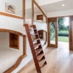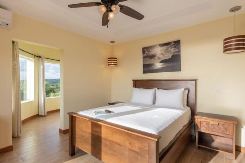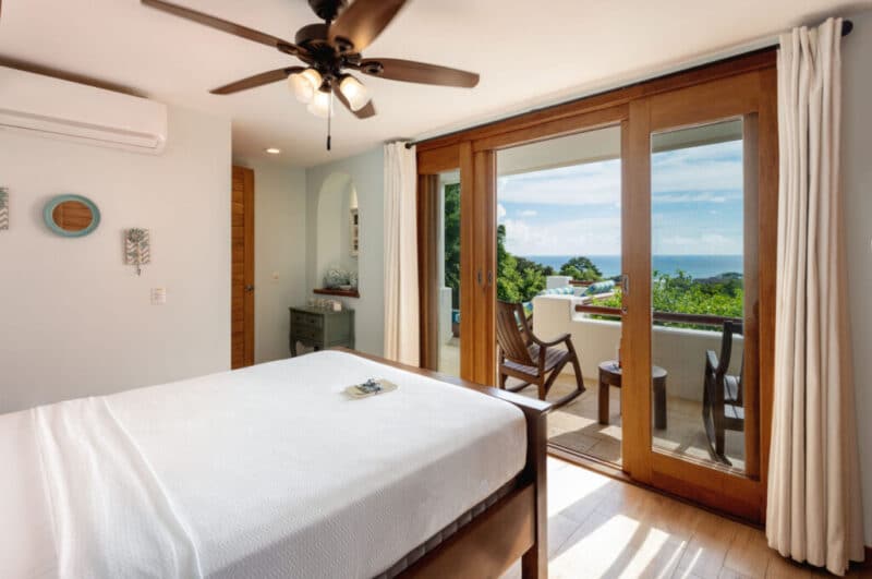 - Master Suite: A luxurious retreat with a unique sitting room showcasing curved windows that frame the ocean and valley. Step out onto the balcony, fitted with rocking chairs, for an intimate ocean-view experience.