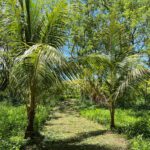 The other part of the property has a cleared spot at the highest point that is perfect for your future house. From here, you can look out and see all the land. Also, on the ground is a rustic one-bedroom open-air casita. There is an outdoor bathroom with a composting toilet. This gives you a place to stay while building your permanent house. A flat platform has been built on the property, which can be a future outdoor kitchen or a yoga platform. There are no building restrictions on the property, so a commercial project such as a hospitality business or small production farm are both possible.