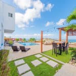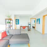 The home’s main entrance leads you to the second level, with four oceanview bedrooms, a living room, and a sizeable oceanview patio. The upper living room is designed to be a more intimate, with an enclosed area for efficient air conditioning, a TV, and a separate space for relaxing and unwinding after a long day. The upper patio is a highlight of this magnificent home, offering stunning views of the surrounding area and the perfect spot for enjoying breathtaking sunsets.