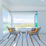 A flight of stairs off the main entrance leads you to the lower level: a beautifully designed open-concept living area featuring a chef’s dream kitchen with an island, dining area, and main living room. Perfect for entertaining guests or relaxing with family, this space is flooded with natural light and boasts spectacular views of the ocean and lush surrounding landscape. Β The home features high-end finishes and custom furniture from Masaya & Co.