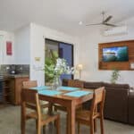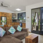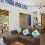 Measuring 880 sq ft, this Hacienda Iguana Eco Casita has 2 bedrooms, Β 2 bathrooms and comes fully furnished & move-in ready. Β The beautifully designed interior of the home is filled with natural light due to glass sliding doors and large windows in every room. Β The front of the home looks out to the courtyard & pool area. Β The back of the home has an oversized covered patio with views toward the golf course. Β The house is within walking distance of various restaurants,Β amenities, and the beach!