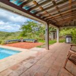 The Home of Five Acres has an inviting, large covered patio—perfect for relaxing in the hammock while enjoying the tropical breeze. There is a large pool, great for cooling off on a hot day and entertaining friends and family. Take in sweeping ocean views from not only the patio but several other points on the property.