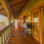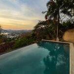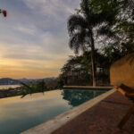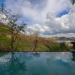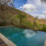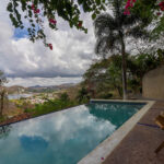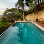 The property has a large covered patio to sit on while taking in the view of the Bay of San Juan Del Sur. There is a large shared pool for the property as well. It is a great place to refresh on a hot day.