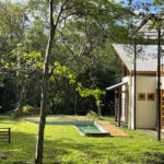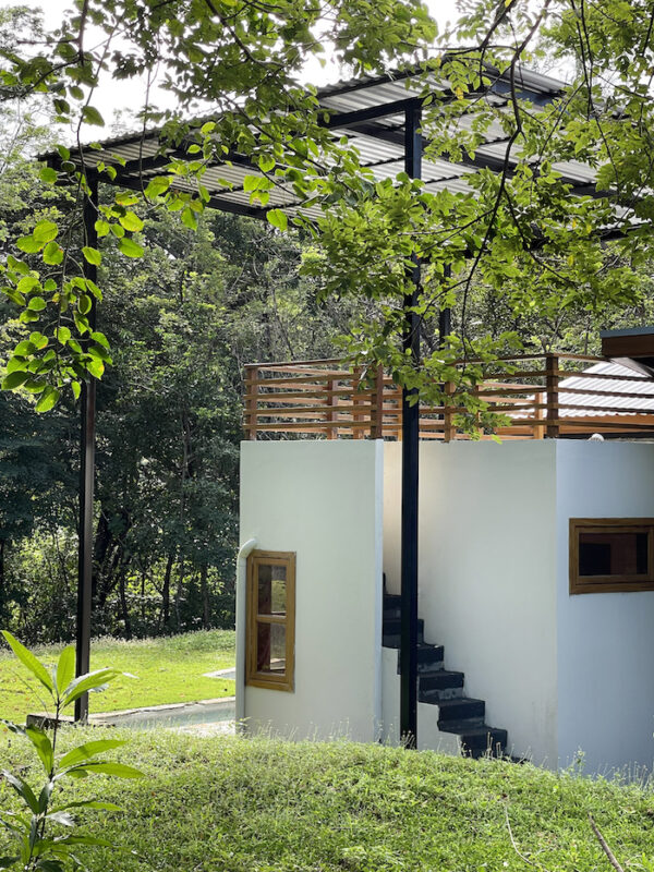 This jungle house on land is a mix of modern design meets ecological living. It is situated on two estate-sized lots of 1.95 acres, with the main house and caretaker’s casita, on a riverfront property. Birds and monkeys are your wake-up call and grazing horses are your neighbors. A superb setting featuring old-growth trees, areas for pasture, a shaded riverbed, and endless hiking trails.