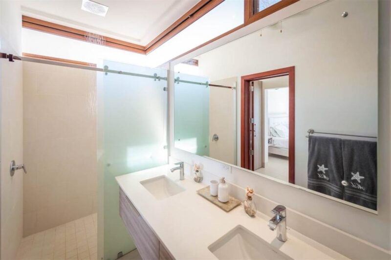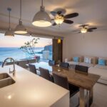 The outdoor areas, including the upper and lower terrace, are designed for maximum enjoyment of the stunning scenery and Nicaragua’s enviable climate. Your private infinity pool awaits on the lower level, set against the ocean’s backdrop, perfect for a refreshing swim or just lounging by the water. Β There is also a large dining area to complement the covered seating area.