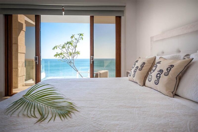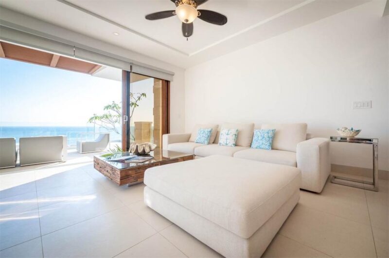 The heart of the La Joya Oceanview Home is the open-concept living area, where the kitchen, dining, and living spaces come together under one stylish roof. Floor-to-ceiling windows flood the space with natural light and frame the ocean views, making it hard to tell where the indoors end and the outdoors begin. Β A picturesque covered terrace blends seamlessly with the open kitchen-liveing area, creating an idyllic spot to entertain guest as you look over the Pacific Ocean.