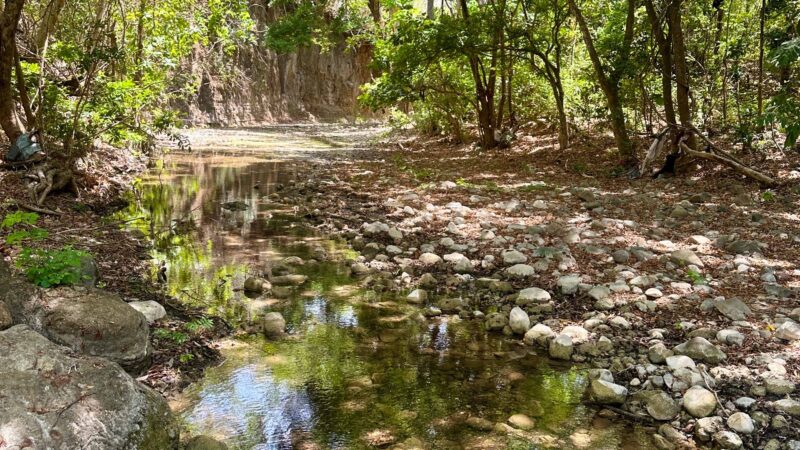 The large parcel is .5 kilometers off a well-maintained dirt road. The property features a river that runs along one side. This is the ideal place to put a well for the property.