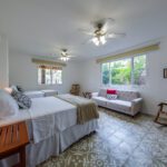 Complementing the main residence, two charming casitas stand on the grounds of the Large Beachside Estate. The larger sibling presents two cozy bedrooms, exuding warmth and privacy, while the smaller offers a solitary haven, perfect for guests seeking a more intimate retreat. Both promise comfort, complete with private patios and the modern necessity of air conditioning.