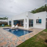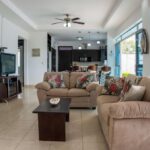 The thoughtfully designed single-story layout includes three spacious bedrooms, each with its own ensuite bathroom, walk-in closet, and air conditioningβperfect for accommodating family or guests in total comfort. A guest half-bath provides convenience for entertaining, while the open-plan living, dining, and kitchen areas flow effortlessly toward the expansive outdoor terrace.