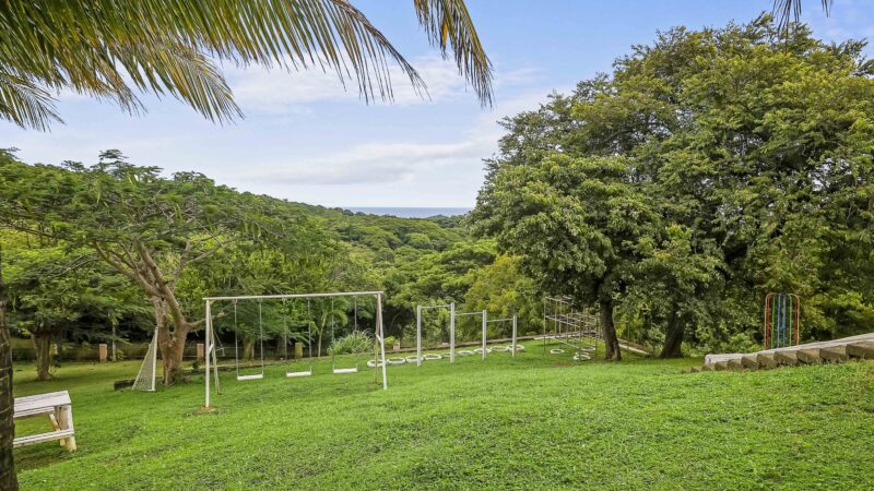 As you enter the private gates of the Luxury 9 Acre Oceanview Retreat, a winding driveway guides you to the home’s elevated vantage point, with parking for six (two covered). The tranquil children’s playground is complete with swings, balance beams, and a jungle gym—infusing the property with playful energy.