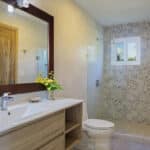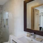 Each bedroom has an ensuite bathroom and windows, providing a comfortable stay for family and friends. The current layout, with two beds in two of the four bedrooms, creates enough space for a large family or the option to convert one of the bedrooms into an office, gym, studio, etc.