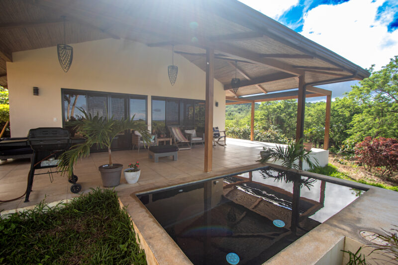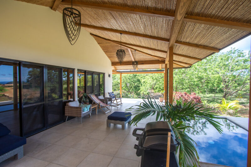 Offering 2 bedrooms and 2 bathrooms, the home delivers a generous 1,000 sq ft of interior living space plus 850 sq ft of shaded outdoor areasβperfect for morning coffee, evening sunsets, or entertaining friends under the stars. The seamless indoor-outdoor flow invites in cool breezes and frames sweeping views of the Pacific coastline, from Costa Rica to the northern headlands.