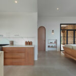 Walk-in and you are greeted by an open-concept living room and kitchen. An oversized L-shaped sofa was custom built for the room. Arched doorways and custom bamboo accents make this home a showstopper.