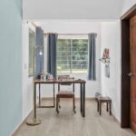 The features in this room don’t stop with the closet, though. There is a dedicated workspace in this room, so there is no need to try and work from the dining room table.