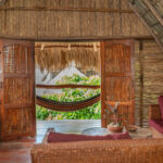 - Multiple seating areas and hammocks surrounded by lush greenery.