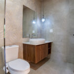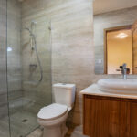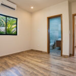 The primary bedroom in this New Construction Near Playa Remanso boasts a walk-in closet, and an ensuite bathroom adds luxury. Comfort is ensured with individual AC units in every bedroom.