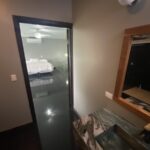 Upstairs, the expansive master bedroom impresses with its own large walk-in closet, a modern bathroom, and a private balcony that showcases the sparkling city lights in the distance. Meanwhile, a conveniently located laundry and utility room includes a stacked LG washer and dryer, making laundry day a breeze.