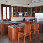 Outdoor amenities enhance the Oceanfront Home in Cala Azul’s appeal, highlighted by a large infinity pool set amidst professionally landscaped gardens with automatic drip irrigation. Enjoy memorable evenings entertaining at the poolside palapa dining area or cooking meals at the covered BBQ station, all while experiencing captivating sunsets.