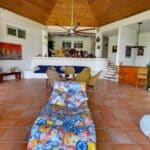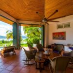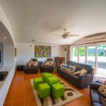 On the lower level, you’ll find a sprawling family entertainment and games room that spills onto an expansive patio, showcasing breathtaking views of the San Juan del Sur beach. This area is perfect for hosting family gatherings and watching the movement in the lively bay.