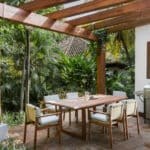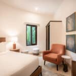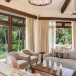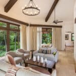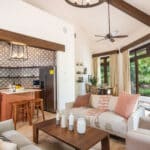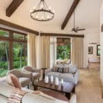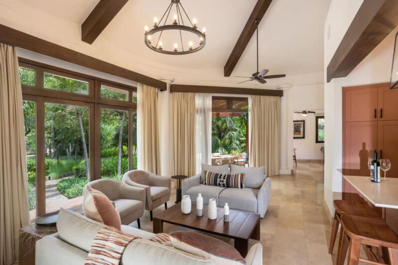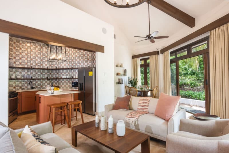 The 2 bedrooms and 2 bathrooms Casita was remodeled by Santa Ana Madera, Rancho Santana’s world-renowned onsite construction company. The home comes fully furnished and 100% turnkey with a fully equipped kitchen, breakfast bar, queen beds in both bedrooms, an open living & dining room, and a furnished terrace. Β The numerous glass sliding doors illuminate the living & dining area with excellent natural light.