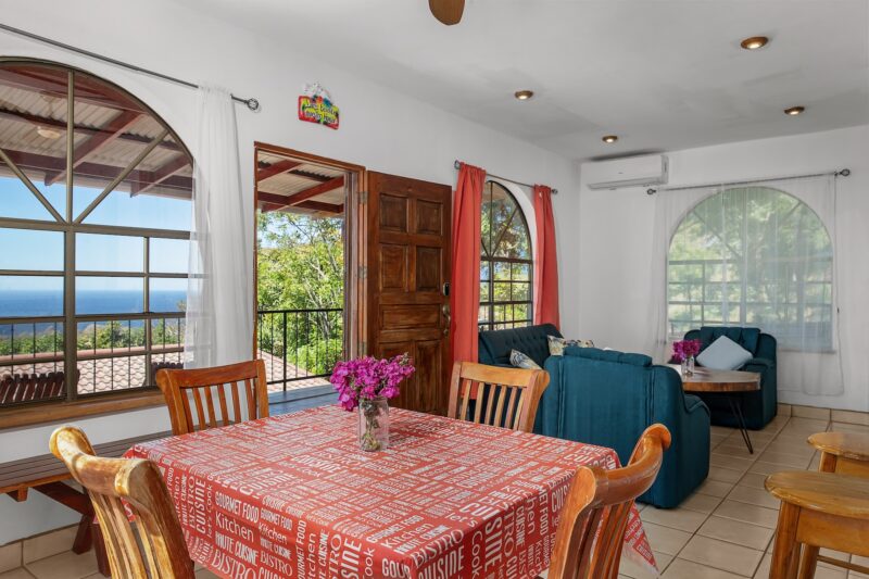Various bay windows throughout this Surf House at Playa Maderas provide ample natural light and stunning views from every angle.