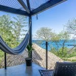 Additional features of this must-see property include a raised open-air dining area with a well-appointed commercial kitchen. Take in 180-degree ocean views from here and also from the hammock balcony and yoga platform above.